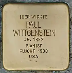 - ↑ Stolpersteine Salzburg – Orte & Biographien. 28 Stolpersteine, darunter Paul Wittgenstein, verlegt am 17.08.2020 am Max-Reinhardt-Platz. Archiviert vom (nicht mehr online verfügbar) am 23. Oktober 2020; abgerufen am 17. August 2020. Info: Der Archivlink wurde automatisch eingesetzt und noch nicht geprüft. Bitte prüfe Original- und Archivlink gemäß Anleitung und entferne dann diesen Hinweis.