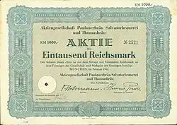 1928 erfolgte die Fusion mit der Gebrüder Thomass Bierbrauerei in München zum Paulaner Salvator Thomas Bräu.[10] Nach einem Bombenangriff im Zweiten Weltkrieg 1944 wurde die Brauerei zum größten Teil zerstört. Bis 1950 wurde sie komplett wieder aufgebaut.[11] 1994 erfolgte die Umwandlung in die Paulaner Brauerei AG, die schon 1999 wieder zur Paulaner GmbH und Co. KG umgewandelt wurde.[12]