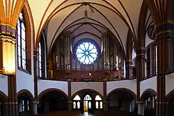 Eine dreimanualige Orgel wurde von der Firma Karl Schuke Berliner Orgelbauwerkstatt auf der Südempore errichtet. Sie soll konzertante und liturgische Anforderungen erfüllen und steht in französisch-symphonischer Tradition. An den Werken Aristide Cavaillé-Colls orientiert, ist sie insbesondere für romantische Kompositionen geeignet. Sie passt sich der Innenarchitektur an, indem die vormals verdeckte Rosette des Kirchturms auf der Südseite des Kirchenraums voll zur Geltung kommt. Die Orgel verfügt über 44 klingende Register und zwei Extensionen. Die insgesamt 2673 Pfeifen sind auf drei Manuale und Pedal verteilt. Récit und Positif sind schwellbar.[6][7]