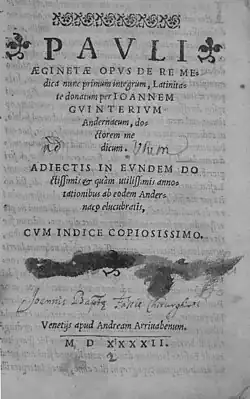 - Johann Winter (Übersetzer): Pauli Aeginetae Opus de re medica. Beigefügte Werke: Adiectis in eundem doctissimis et quam utilissimis annotationibus ab eodem Andernaco elucubratis cum indice copiosissimo. Venedig 1542 (Digitalisat).