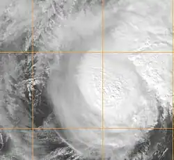 Taifun Choi-wan bildete sich in der Frühe des 11. September 2009 als schwache tropische Störung, etwa 1100 km östlich von Guam.[93] An diesem Tag entwickelte sich die Störung schnell und wurde sowohl von der JMA als auch durch das JTWC am nächsten Tag als tropisches Tiefdruckgebiet klassifiziert. Die Intensivierung setzte sich fort und am 12. September gab die JMA dem inzwischen zum tropischen Sturm angewachsenen System den Namen Choi-wan.[94][95][96][97] Während des 13. September verlangsamte sich die rapide Intensivierung und Choi-wan erreicht gerade so die Stärke eines schweren tropischen Sturm, bevor am nächsten Tag die rapide Intensivierung wieder einsetzte, sodass Choi-wan zum Taifun aufgestuft wurde. Im Tagesverlauf gewann der Taifun soviel an Kraft, dass er der Kategorie 4 auf der Saffir-Simpson-Hurrikan-Skala entsprach.[98][99][100] Choi-wan verstärkte sich dann während des 15. September weiter, nach den Angaben des JMA betrug die zehnminütige Spitzenwindgeschwindigkeit 195 km/h,[101] das Joint Typhoon Warning Center meldete den Höhepunkt des Kategorie-5-Taifuns mit einminütigen Windgeschwindigkeiten von 260 km/h.[102][103][104][105]