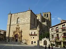 - Die Westfassade der in den Jahren nach 1540 erbauten ehemaligen Kollegiatkirche Santa Ana ist unvollendet geblieben. Das Portal stammt aus dem 18. Jahrhundert; zur gleichen Zeit wurde das Innere der Kirche in barocker bzw. klassizistischer Manier umgestaltet. Der Hauptaltar entstand nach Entwürfen des Architekten Ventura Rodríguez. Vor dem Portal stehen acht monolithische Säulen mit Kapitellen, die – ebenso wie die drei Kaiserbüsten – im Auftrag des sechsten Grafen von Miranda aus Neapel herbeigeschafft wurden.