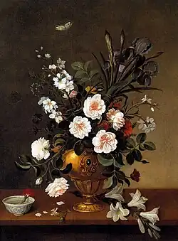 - ↑ Roses, carnations, a tulip and other flowers in a sculpted alabaster urn, with a carnation in a glass vase, on a wooden table; and Roses, lilies, iris and other flowers in a sculpted alabaster urn and other flowers in a glass vase, on a wooden table, 2 Gemälde, eines signiert und datiert 1665, ehemals in Auktion bei Christie’s, Lot 46, 5. Juli 2011 (englisch; Abruf am 11. November 2022)
