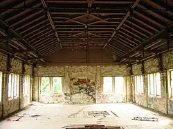Erst 1995 sicherte die Stadt das Gebäude und ließ Fenster und Türen zumauern. Mehrfach war es zu Vandalismus und Plünderungen gekommen; dreimal entstanden Brände, die aber keine größeren Schäden verursachten. Trotz dieser Zerstörungen befand sich die Bausubstanz in relativ gutem Zustand, die schöne holzgetäfelte Decke des Saales hat die Jahre des Verfalls fast unversehrt überstanden. Die Stuckdecken sind allerdings durch verschiedene Wasserschäden zum Teil zerstört.