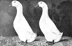 - ↑ a b Amerikanische Pekingente. In: mayer-eugen.de. Eugen Mayer, archiviert vom (nicht mehr online verfügbar) am 23. Juni 2012; abgerufen am 2. Mai 2013 (Beschreibung der Amerikanische Pekingente, inkl. Bericht von Paul-Erwin Oswald (in: Geflügel Zeitung 16/2004) und Rassenbeschreibung aus Standard).
