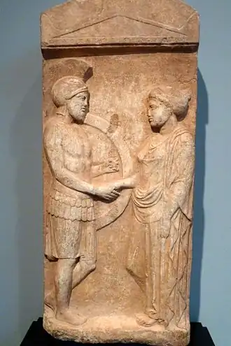 Attisches Grabrelief eines Soldaten und seiner Frau, um 400 v. Chr