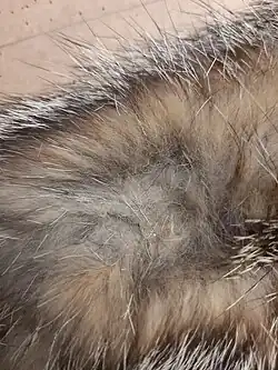 - Ein längeres und dichteres Oberhaar des Fellwerks gewährt dem Unterhaar einen besseren Schutz, die Unterwolle ist in der Haltbarkeit weniger bedroht.[1] Allerdings neigen die meisten langhaarigen Fellarten eher zum Abrieb und beeinträchtigen dadurch das Aussehen des Pelzteiles, bevor es zu einem völligen Abrieb bis hin zum Sichtbarwerden des Leders kommt.