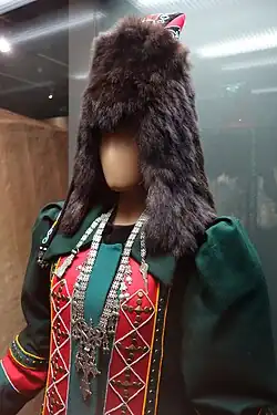 Die Bärenfellmütze ist eine Kopfbedeckung, die von Einheiten verschiedener Streitkräfte als Teil der Paradeuniform getragen wird, außerdem die Kopfbedeckung tatarischer Völker.[43]