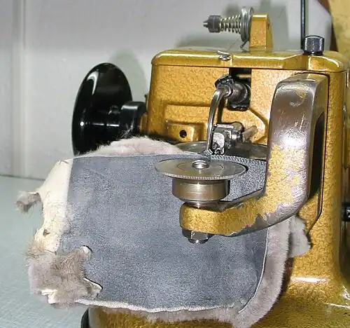 1. a b c Alexander Tuma: Pelz-Lexikon. Pelz- und Rauhwarenkunde, Band XIX. Alexander Tuma, Wien 1950, S. 102–103, Stichwort „Kürschnermaschine“.