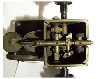 der Greifer, die Nadelstange, der Nadelkanal, der Fellführer, die Fadenklemme, die Fadenanzugsfeder, die Fadenspannung und der Transportmechanismus, der das Nähgut jeweils um eine Stichlänge weiter bewegt.[10]