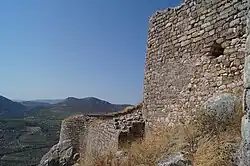 ![]() Blick von Akrokorinth auf die Burg Penteskouphi | ||