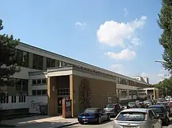 Der Schulkomplex in der Wendstattgasse besteht aus einer Volksschule auf Nummer 3, vor der eine Nirostastahlskulptur Figur (1974) von Oskar Höfinger steht, der Musik- und Sportmittelschule auf Nummer 5 mit zwei keramischen Reliefs Baum und Sonne (1972) von Peter Gangl, und einer Rundturnhalle. In letzterer befinden sich vier Mosaik-Reliefs Sonne mit Schmetterlingen, Sonne mit Fischen, Sonne mit Schwalben und Sonne mit Sternen (1972) von Andrea Schrittwieser.
