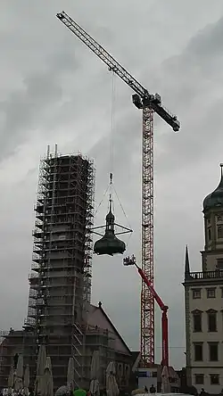 - ↑ Augsburg: Perlachturm: Die spektakuläre „Köpfung“ hat begonnen. Abgerufen am 24. Juli 2025.
