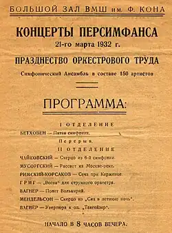 1922 wurde in Moskau als Experiment in angewandtem musikalischen Kollektivismus ein Orchester ohne Dirigent (der als absolutistisches Herrschaftssymbol abgelehnt wurde) gegründet. Unter dem Kürzel „Persimfans“ erlangte das Orchester bald auch internationale Bekanntheit. Als treibende Kraft fungierte Lew Zeitlin, Professor für Violine am Konservatorium Moskau.