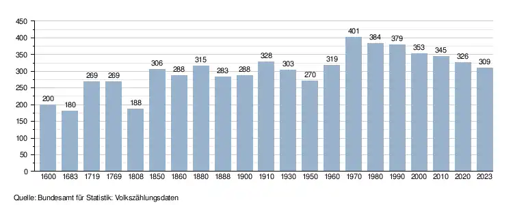 - ↑ Ständige und nichtständige Wohnbevölkerung nach institutionellen Gliederungen, Staatsangehörigkeit (Kategorie), Geschlecht und Alter, 2010-2024. Bei späteren Gemeindefusionen Einwohnerzahlen aufgrund Stand 2024 zusammengefasst. Abruf am 28. August 2025