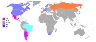 - Teilnahmeverzicht/zurückgezogen/nicht zugelassen: 4× (18,2 %; 1934, 1938, 1950 und 1954)