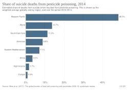 - ↑ Share of suicide deaths from pesticide poisoning. In: Our World in Data. Abgerufen am 4. März 2020.