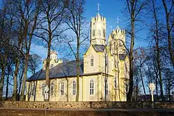 1786 wurde die erste hölzerne Kirche von Kristina Kačanauskienė gebaut und eine Gemeinde gegründet. Im 18. Jahrhundert gab es eine Gemeindeschule. 1858 wurde ein neues Projekt der hölzernen Kirche und 1862 das eines Massivbaus bestätigt. Unter Pfarrer Anzelmas Nonevičius wurde 1877 eine neue hölzerne Kirche im neogotischen Stil nach dem 1861 vorgeschlagenen und 1876 bestätigten Projekt von Tomas Tišeckis errichtet.