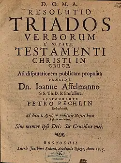 - Resolutio Triados Verborum E Septem Testamenti Christi In Cruce (Dissertation vom 1. Mai 1615 in Rostock). Rostock 1615. (Digitalisat)