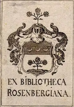 Der Katalog von Václav Březan, der sich ebenfalls in Stockholm befindet, diente der Königlichen Schwedischen Bibliothek als Vorbild für die eigene Katalogisierung. Der Großteil der Rosenbergschen Bibliothek wurde 1697 beim Brand des königlichen Schlosses vernichtet. Werke aus Rosenbergscher Provenienz sind in Böhmen und Mähren nur in geringer Zahl erhalten geblieben.[5]