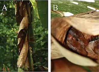 Kleine Gruppen mit 7 bis 10 Mitgliedern ruhen in zusammengerollten trockenen Bananenblättern oder in Blättern von Helikonien. Dabei kommen durchschnittlich 4 Männchen auf 10 Weibchen. Diese Fledermaus jagt nachts Insekten. Zur Fortpflanzung ist nichts bekannt.[2][3]