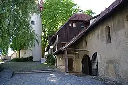 - ↑ In der Literatur, so auch im Dehio-Handbuch und der bayerischen Denkmalliste, stehen falsche Daten bezüglich der Erweiterungszeit. Die Erweiterung kann nicht im 15. Jahrhundert erfolgt sein, da die Christophorus-Zeichnung – einhellig in die Zeit um 1300 datiert – im Erweiterungsteil liegt. Die verbreitete Falschinformation beruht vermutlich auf falschen Zahlen in der Legende einer Grundrisszeichnung im Denkmalinventar von Horn/Meyer. Im Fließtext sind dagegen die schlüssigen Daten zu finden.
