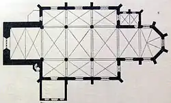 Der Grundriss der Petrikirche von 1894 verdeutlicht das quadratische Langhaus