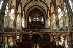 Die Kirche mit 1200 Sitzplätzen besteht aus Sandstein und Backstein, ist 59 m lang und 36 m breit. Ihre eiserne Dachstuhl-Konstruktion wurde von der Königin-Marien-Hütte gefertigt, die heutigen Turmglocken stammen aus der im Krieg zerstörten Lukaskirche.