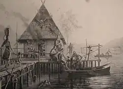 Im Geiste der Romantik wurden die Lebensbedingungen der damaligen Siedlungsbewohner idyllisch verklärt, es entstand die weitgehend einheitliche Vorstellung einer wilden Bevölkerung, die in harmonischer Familien- oder Sippengemeinschaft, in einer romantischen Umgebung von der Jagd und Fischfang lebte. Diese Motive wurden Gegenstand zahlreicher zeitgenössischer Zeichnungen und Gemälden von Künstlern wie Albert Anker, Rodolphe-Auguste Bachelin und Karl Jauslin, oder literarischen Erzählungen wie beispielsweise von David Friedrich Weinland und Friedrich Theodor Vischer (Auch Einer). Diese romantisierten Vorstellungen prägten das allgemein verbreitete Bild der historischen Pfahlbauer und fanden Eingang in populärwissenschaftliche und sogar wissenschaftlicher Publikationen, die in Teilen bis heute spürbar nachwirken.[1]