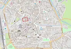 Die Altstadt entstand zunächst südlich der Insel, später auch nördlich und rundherum. Sichtbare bauliche Reste der Pfalz sind nicht erhalten, doch dürften sich ihre Grundmauern unter dem barocken Jesuitenkolleg (heute Altersheim) und dem östlich gegenüberliegenden Häuserblock sowie den nördlich benachbarten Grundstücken befinden; das Kolleg besetzt nur ein gutes Viertel des einstigen Pfalzgeländes.[3]