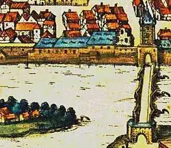 - Die St.-Michaels-Kapelle an der Stelle der heutigen Peter-und-Pauls-Kirche und der Königshof mit den Umgrenzungsmauern des heutigen Deutschhofes.