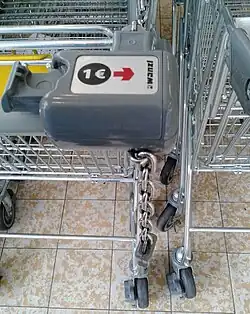 - ↑ Herstellerhomepage Einkaufswagensicherung von Rocateq ( vom 19. Oktober 2014 im Internet Archive)