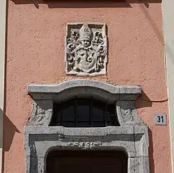 Der zweigeschossige Walmdachbau wurde nach Plänen des Baumeisters Johann Georg Hitzelberger errichtet. Er besitzt fünf Fensterachsen.