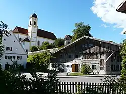 Mit dem daneben liegenden Pfarrstadel bildet das Pfarrhaus ein Ensemble unterhalb der Pfarrkirche St. Nikolaus.