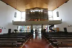 Anfangs war die Kirche mit einer, hinsichtlich Klangfülle unzureichenden, elektronischen Orgel von 1969 ausgestattet.[2] Seit 2016 befindet sich die Walcker-Orgel op 3340, Baujahr 1955 der ehemaligen Innsbrucker Stadtsäle in der Pfarrkirche.[3][4] Sie hat 46 Register mit 3254 Pfeifen, die auf Schleifladen stehen, verteilt auf drei Manuale und Pedal.[2]