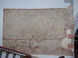 Es gibt im Langhaus alte Wandmalereien, an der Westwand im Süden Madonna mit Peter und Paul, Stifterfamilie Hanns und Frau Hedberg 1557; Turmsüdwand, ursprünglich außen, Jüngstes Gericht, Christus mit Kreuz in der Mandorla, darunter Auferstandener stark fragmentiert um 1300.