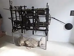 Das ehemalige Turmuhrwerk steht im Turmerdgeschoß, gebaut 1806 durch den Uhrmacher Johannes Schardmüller im Markt Gresten.