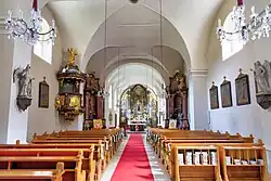 Die Orgel baute 1728 Anton Richter. 1924 schuf Johann M. Kauffmann ein neues Orgelwerk mit 15 Registern. Diese befindet sich hinter dem Hochaltar.