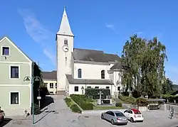 Die im Kern spätgotische Saalkirche entstand in der zweiten Hälfte des 15. Jahrhunderts. 1683 entstanden bei der Zweiten Wiener Türkenbelagerung schwere Schäden an der Kirche. Im 17. Jahrhundert Anbau der Sakristei südlich am Chor und Anbau einer Kapelle nördlich des Langhauses. 1890 wurde das Langhaus erhöht. 1910 wurde nördlich am Chor an der Stelle einer ehemaligen Grabkapelle ein symmetrischer Anbau wie die südliche Sakristei angebaut. 1948 wurde ein Durchbruch des Haupteinganges an der Westseite des Turmes hergestellt. 1957 wurde die Ummauerung des Friedhofes entfernt. 1973/1974 erfolgte ein Umbau und eine Generalrestaurierung der Kirche, dabei wurden die Räume des Chores, der alten Sakristei und des nordseitigen Zubaus vereinheitlicht und ein Neubau der Sakristei unter einem Pultdach an der Langhaussüdseite errichtet.