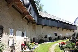 Die Kirche ist von einer frühneuzeitlichen etwa fünf Meter hohen Ringmauer mit einem unregelmäßigen sechseckigen Grundriss umschlossen. An den Knickstellen im Osten und Westen stehen 3/4 Rundtürme. In der Nordostecke der Wehranlage befindet sich ein trapezförmiger Torbau mit Schießscharten und Tonnengewölbe. Über dem profilierten Portal an der Außenseite befindet sich eine um 1515 geschaffene spätgotische Kreuzigungsgruppe, auf der Innenseite ist ein Bauabschlussstein mit der Bezeichnung 1535 angebracht. Die Türe des Torbaues ist mit Schießscharten ausgestattet. Der hölzerne gedeckte Wehrgang mit Schildwand und Wurfspalte, der durch bewegliche Balken abdeckbar ist, ist noch gut erhalten. Im Süden schließt an der Wehrmauer der Pfarrhof an.