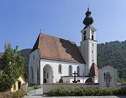 Eine Kirche wurde 1194 urkundlich genannt. Der gotische Kirchenbau aus 1459 wurde im 17. Jahrhundert barockisiert.
