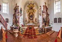 Der barocke Hochaltar aus Marmor entstand 1722. Das Altarblatt Immaculata malte Johann Michael Rottmayr de Rosenbrunn (1722).