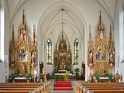 Den Hochaltar als Aufbau mit den Figuren schuf Fidelis Rudhart (1901).