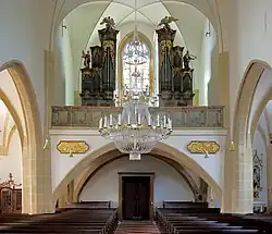 Das Orgelgehäuse von Johann Hencke (1743) ist ein zweiteilig gestaffeltes Prospekt mit den Aufsatzfiguren Cäcilia und David und hat ein gleichzeitiges Brüstungspositiv. Das Orgelwerk ist von Philipp Eppel (1961).