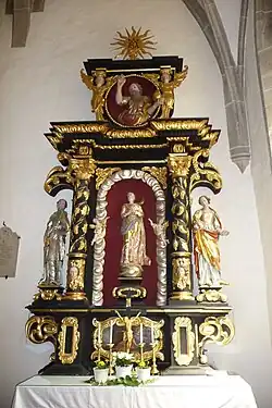 An der Ostwand des südlichen Seitenschiffes steht ein barocker Liebfrauenaltar (rechter Seitenaltar) aus der zweiten Hälfte des 17. Jahrhunderts. Neben der Gottesmutter Maria stehen rechts die Hl. Barbara und links die Hl. Katharina. Der Aufbau zeigt eine Gott-Vater-Darstellung, die vom alten Hochaltar stammt.