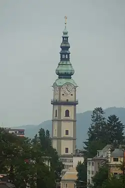 - ↑ Klagenfurt: Warum am Stadtpfarrturm die Zeit stillsteht. Auf die Uhr am Stadtpfarrturm sollte man sich nicht verlassen. Sie ist vor einigen Tagen stehengeblieben. In: kleinezeitung.at. 30. Juli 2017, abgerufen am 18. Februar 2022.