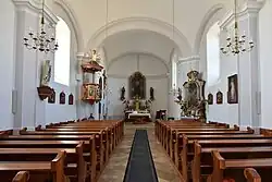 Der Hochaltar wurde um 1800 geschaffen und besteht aus einer Mensa und einem Tabernakel mit Engeln. An der Wand ist ein Ölbild, das den heiligen Andreas zeigt. Die Kanzel mit Relieffiguren der vier Evangelisten entstand um 1800. Auch der Taufstein stammt teilweise aus dem 18. Jahrhundert. An der Tür zur Sakristei hängt ein Ölbild aus der ersten Hälfte des 18. Jahrhunderts, das den Traum des heiligen Romuald zeigt. Dabei handelt es sich um eine Kopie des Originals von Andrea Sacchi, das in den Vatikanischen Museen hängt mit einer Ansicht des Kamaldulenser-Klosters, das auf dem Wiener Kahlenbergstand. Es wurde 1969 restauriert. Es stammt, ebenso wie der barocke Seitenaltar aus dem aufgelassenen Kamaldulenserkloster Landsee.