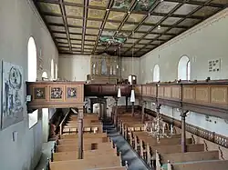 Die Ursprünge der Kirche liegen in einem Kapellenbau. Nach der Zerstörung im Dreißigjährigen Krieg erfolgte ein schrittweiser Wiederaufbau. Zur Datierung dieses Wiederaufbaus weisen Daten an einer Empore auf die Jahre 1659 und 1699 hin.[1] Der Hofer Bildhauer Johann Nikolaus Knoll fertigte um das Jahr 1700 einen nicht mehr vorhandenen Taufengel[2] und ein Holzkruzifix. Bei einer umfassenden Umgestaltung im Jahre 1899 wurde das Langhaus der Kirche nach Osten erweitert und ein neuer Chorraum angefügt sowie diverse Ausstattungselemente umgestaltet.[3] Kirche und Pfarrhaus sind Baudenkmäler des Ortes.