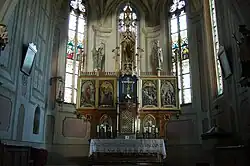 Anlässlich einer Restaurierung der Kirche erhielt der Chor 1871 einen vom Grazer Bildhauer Jakob Gschiel ausgeführten neugotischen Hochaltar. Die beiden frühbarocken Seitenaltäre im Schiff stammen von 1678. Eine Glocke nennt Johann Feltl 1833.