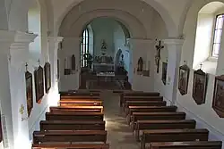 Der Hochaltar mit einer neuen Mensa trägt eine Figur der Muttergottes aus der Zeit um 1700. Der Taufstein mit reichem Dekor entstand in der ersten Hälfte des 18. Jahrhunderts.